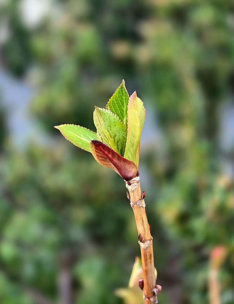 These mountain hydrangea leaves are moving quickly along, too …