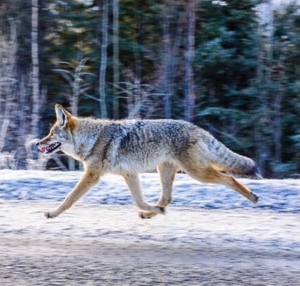 We saw this wolf running down the road as we were driving. He paid no attention to us and seemed very intent on getting somewhere. I watched him in the rear view and he eventually veered off into the forest.