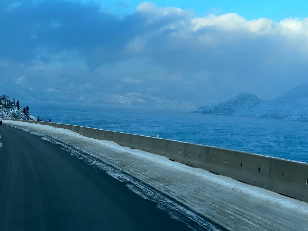 Yesterday we took a short drive from Penticton to Westbank (just outside Kelowna) to do an errand. On the way, we saw that Lake Okanagan was displaying some rather interesting weather effects.