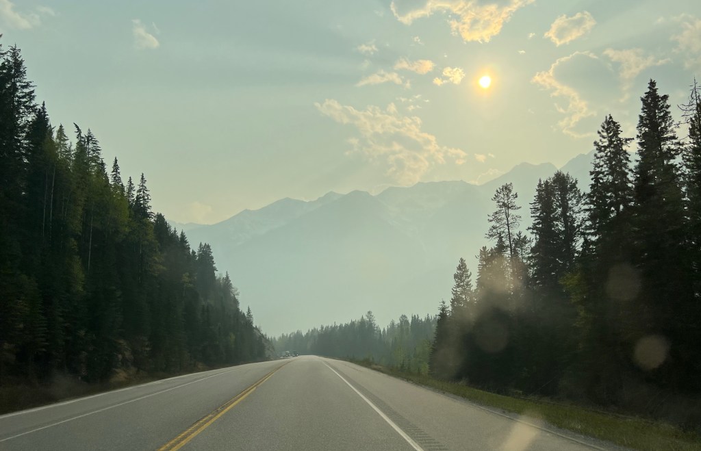 Hi Allan, we have arrived home, but it was fairly smoky the entire way (after we left NWT we had to go to Sask. and then to Penticton via TCH); the Calgary area air quality was really poor. Here in the south Okanagan it’s much better, but still smoky. Safe drive, Allan.