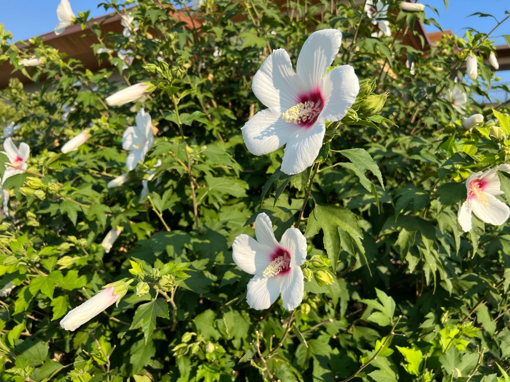 They come in a variety of colours and are also known as “rose mallow” and “rose of Sharon.”