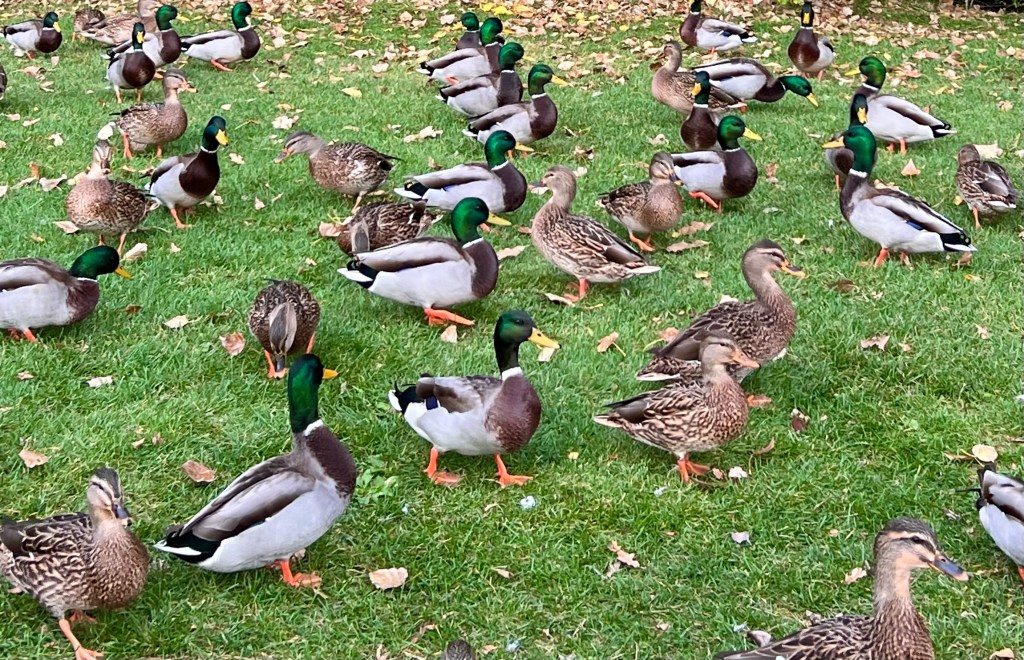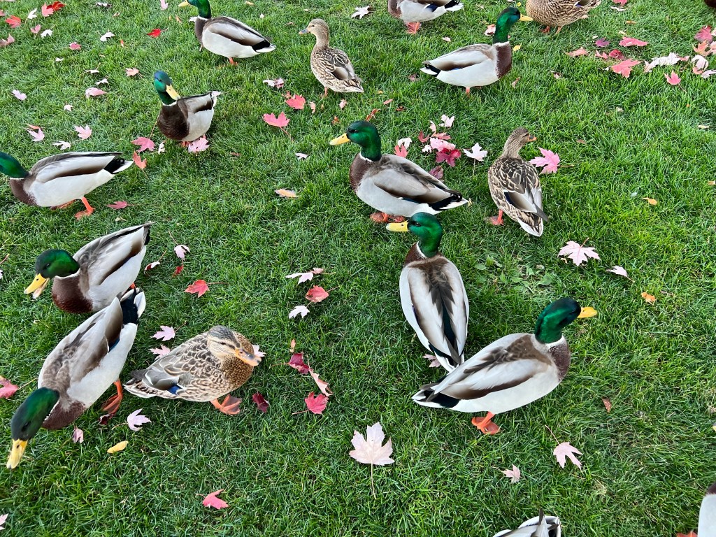I wasn’t too concerned about making sure everyone got some, although I did try to do that. These ducks are quite well fed: just as I was finishing up, someone else was arriving with a big bag of veggies cut into duck-sized bites.