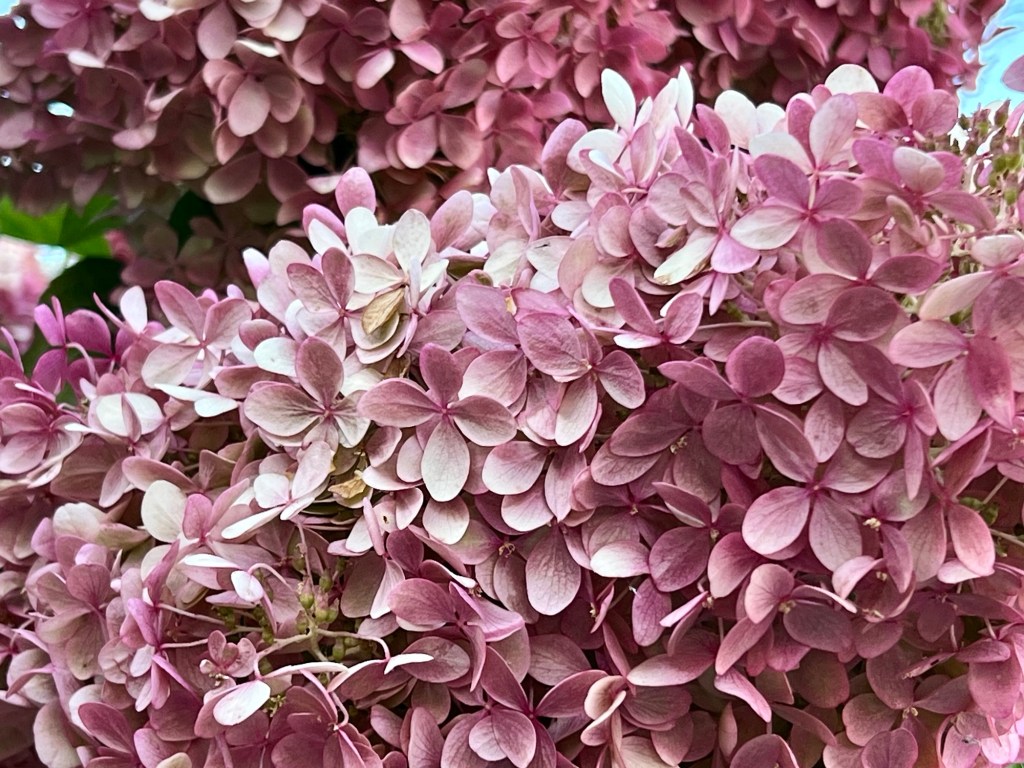 I have enjoyed watching the changes in this hydrangea bush over the last six weeks and have been surprised at how beautifully it has matured and developed. I thought that its blooming cycle was going to be completed much earlier. How wrong I was!