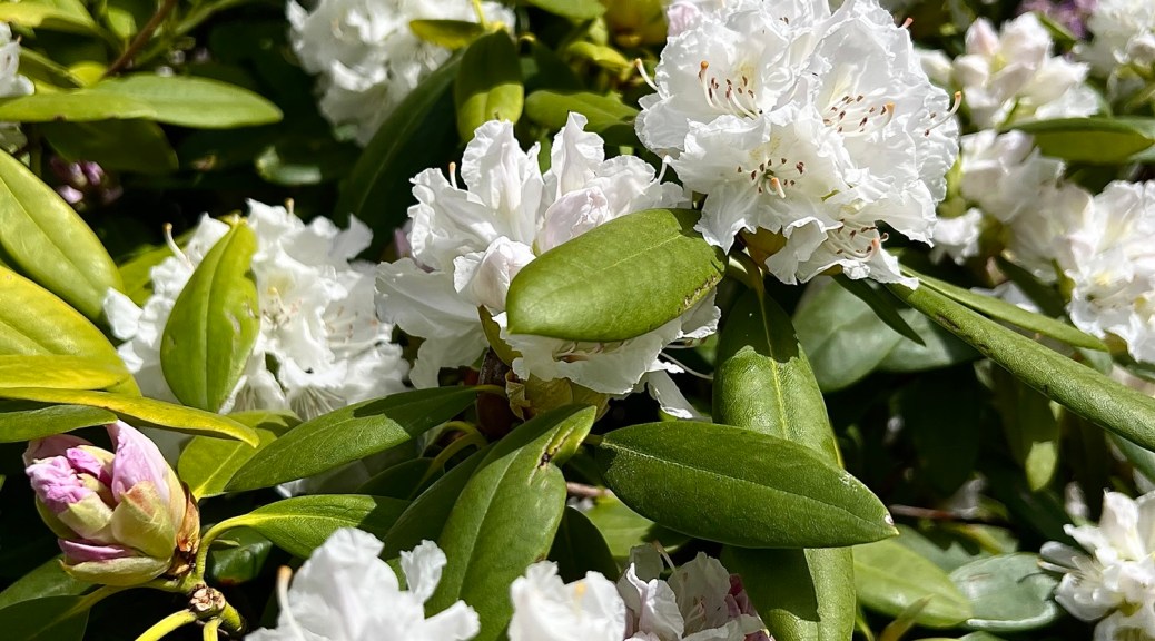 Rhododendrons come in many lovely shades but I don’t often see the white ones.