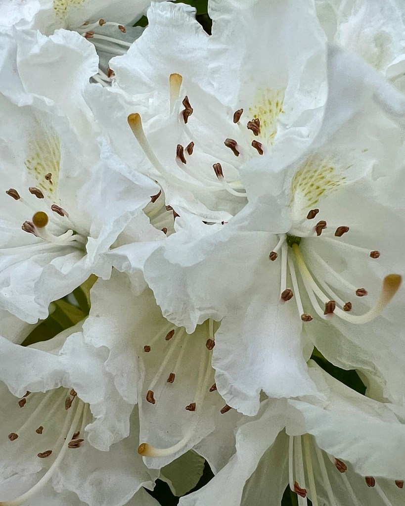 There are many, many spring blooms right now but these white rhododendrons do stand out.
