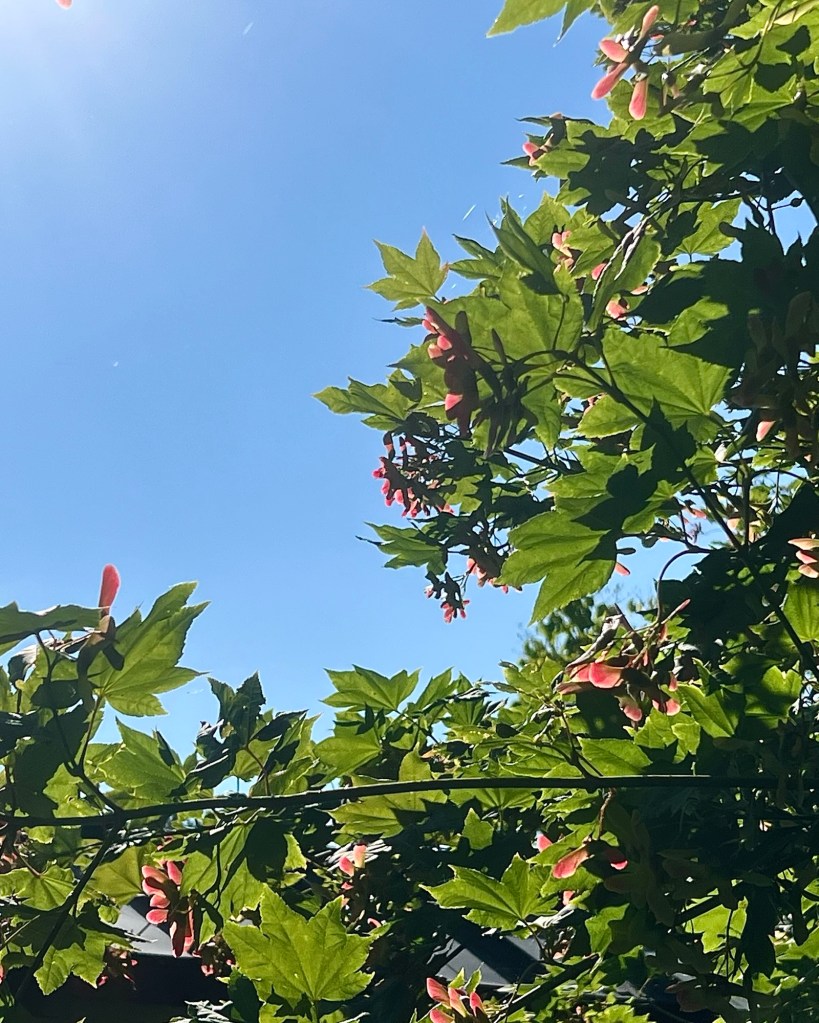 Red tinted maple tree seed pods …