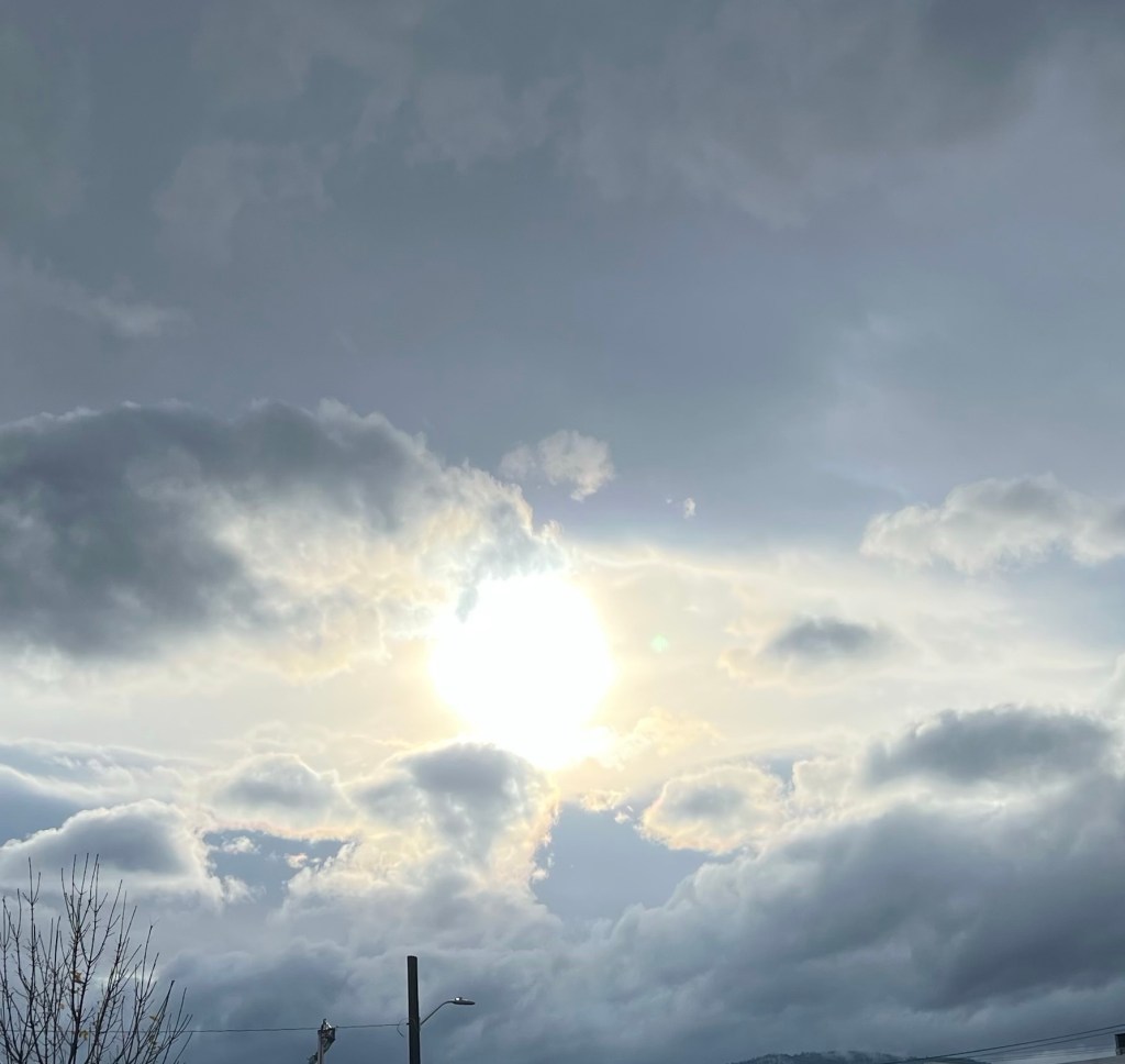 The sun tried valiantly to get through but that didn’t last long. We’re heading toward winter and so I have to get used to about six weeks of cloud that settles right into the valley. It can be also be beautiful but I’m glad it doesn’t last any longer than it does!