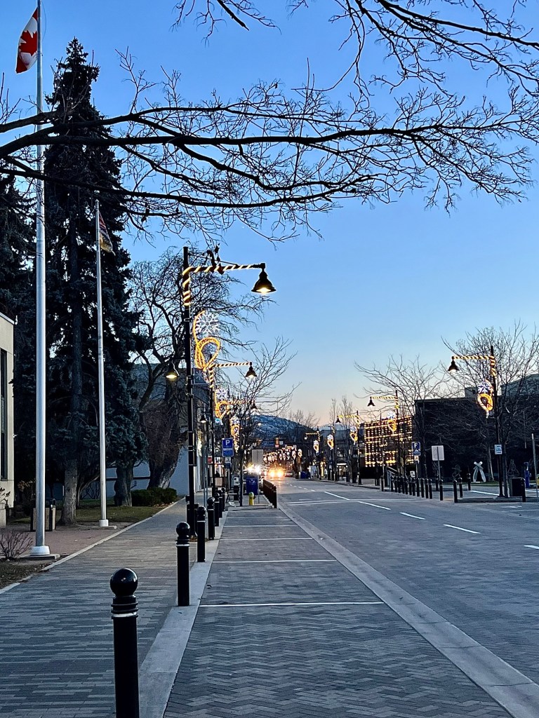 The last leg of my walk took me along one of the downtown’s main streets as the light began to fade and shoppers decided to start heading home. I headed home, too, where I found some hot chocolate.