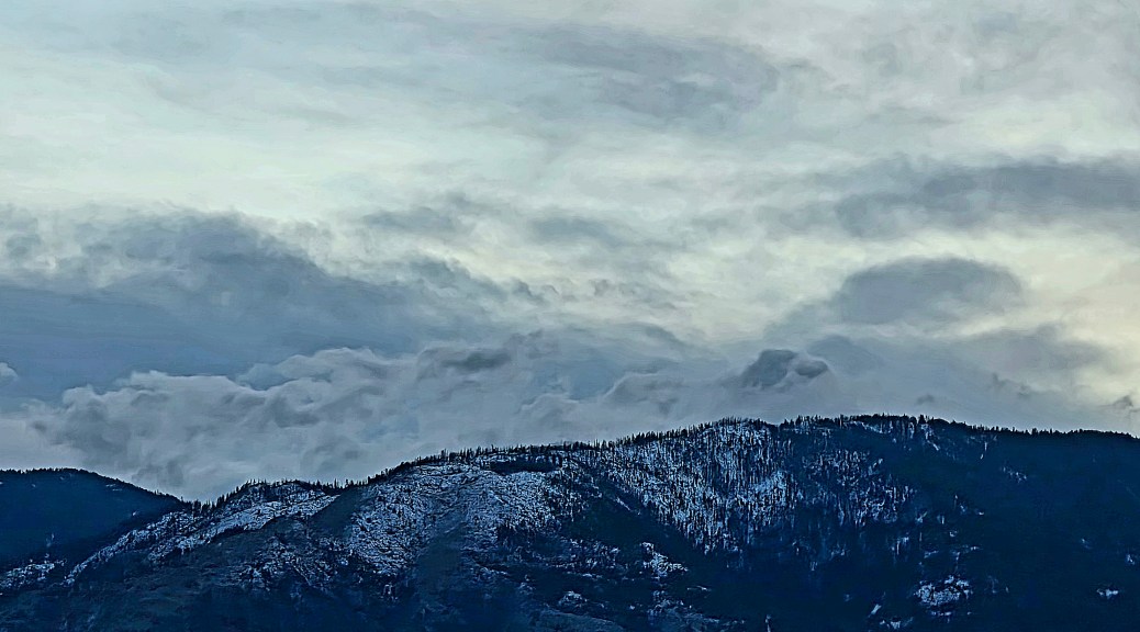 The day starts with layered, soft and luminous greyish-blue skies …