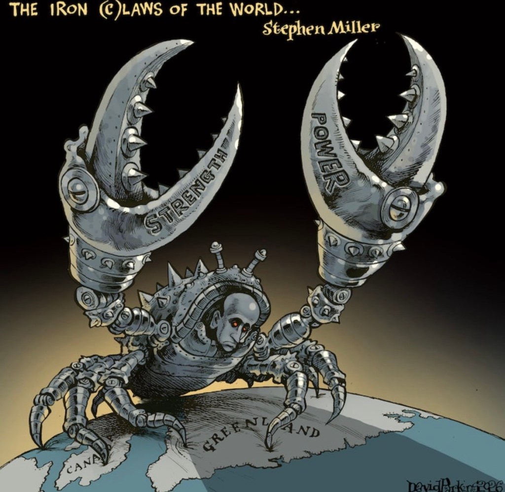 Trump sycophant Stephen Miller’s rant vis á vis Greenland that might makes right is wrong, and it’s always wrong. Is this how the United States treats an old friend, an ally?? Is this how Trump carries out his election platform to remove the United States from involvement in wars??