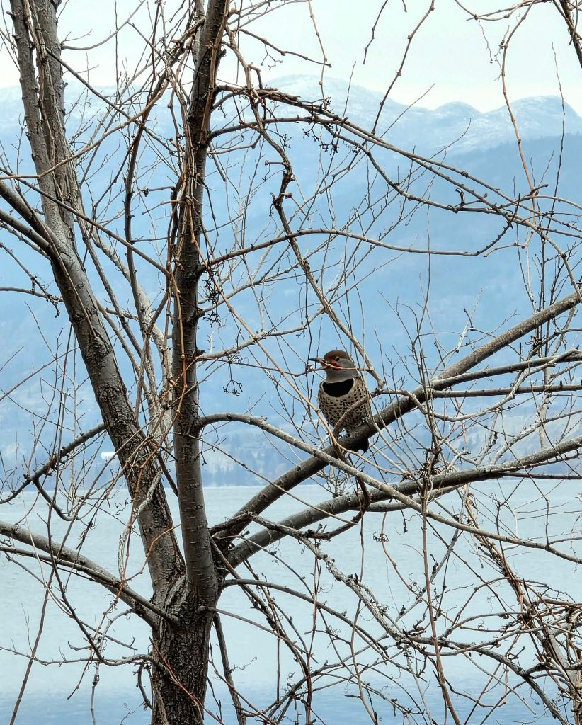I saw a pair of red-shafted northern flickers, too. They overwinter as well but also seemed to be very active; one of them was drumming and showing some mating behaviours. So, seeing these birds convinced me that we might soon be seeing spring.