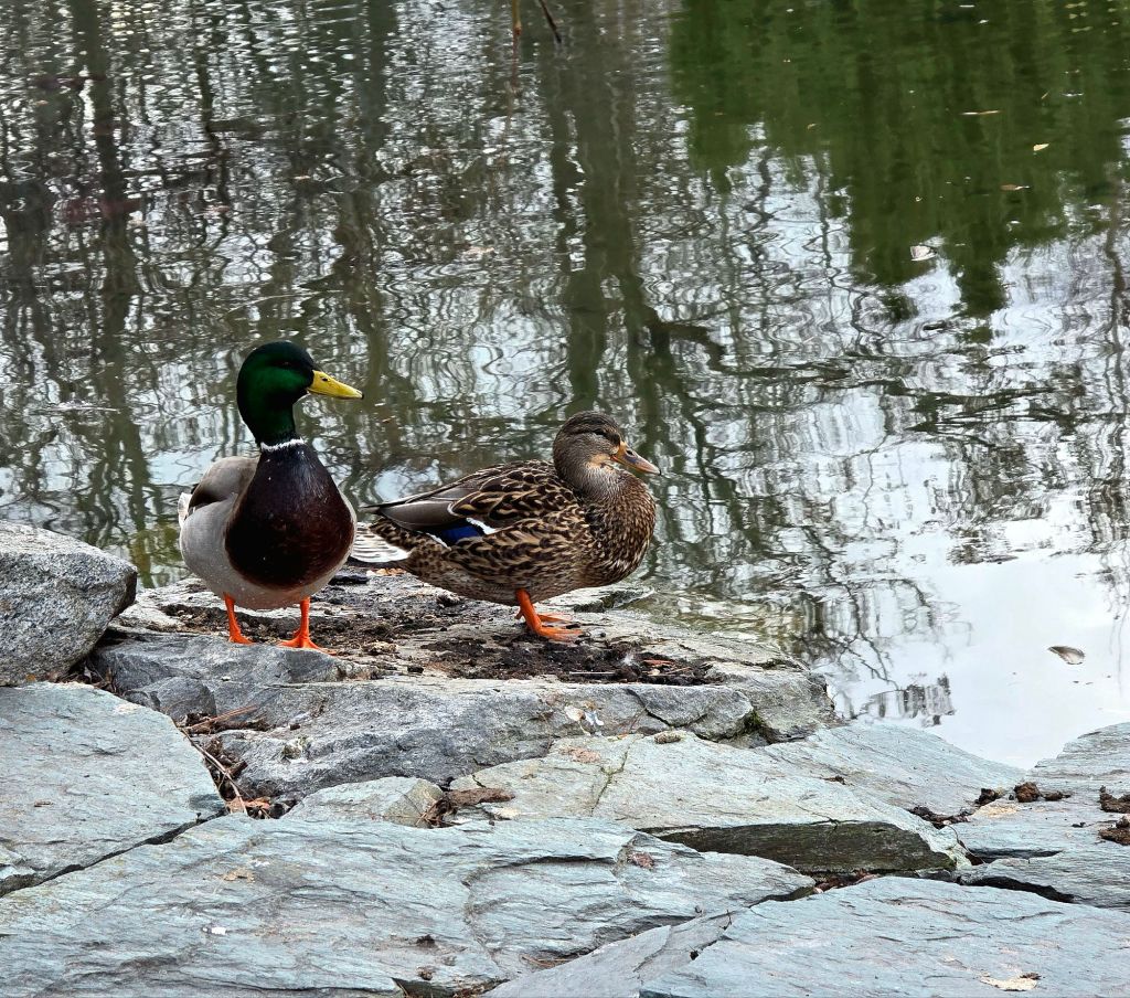 The mallard ducks have all paired off …