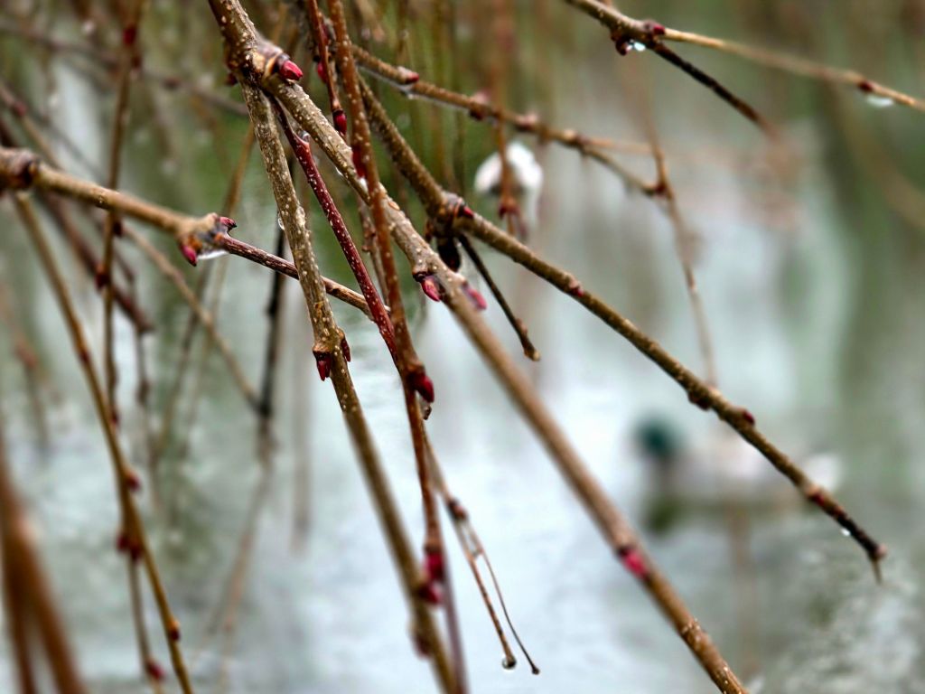 As I continued my ramble, the snowy rain became more rain-like; it had been a bit of an incongruity since some of the trees are beginning to bud as you can in the picture above.
