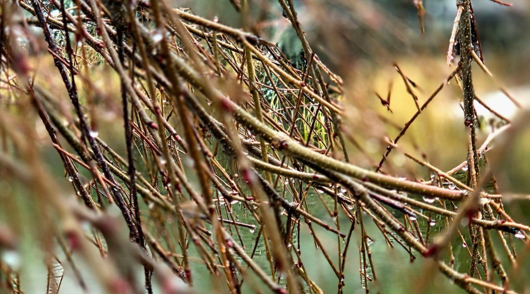 As I continued my ramble, the snowy rain became more rain-like; it had been a bit of an incongruity since some of the trees are beginning to bud as you can in the picture above.