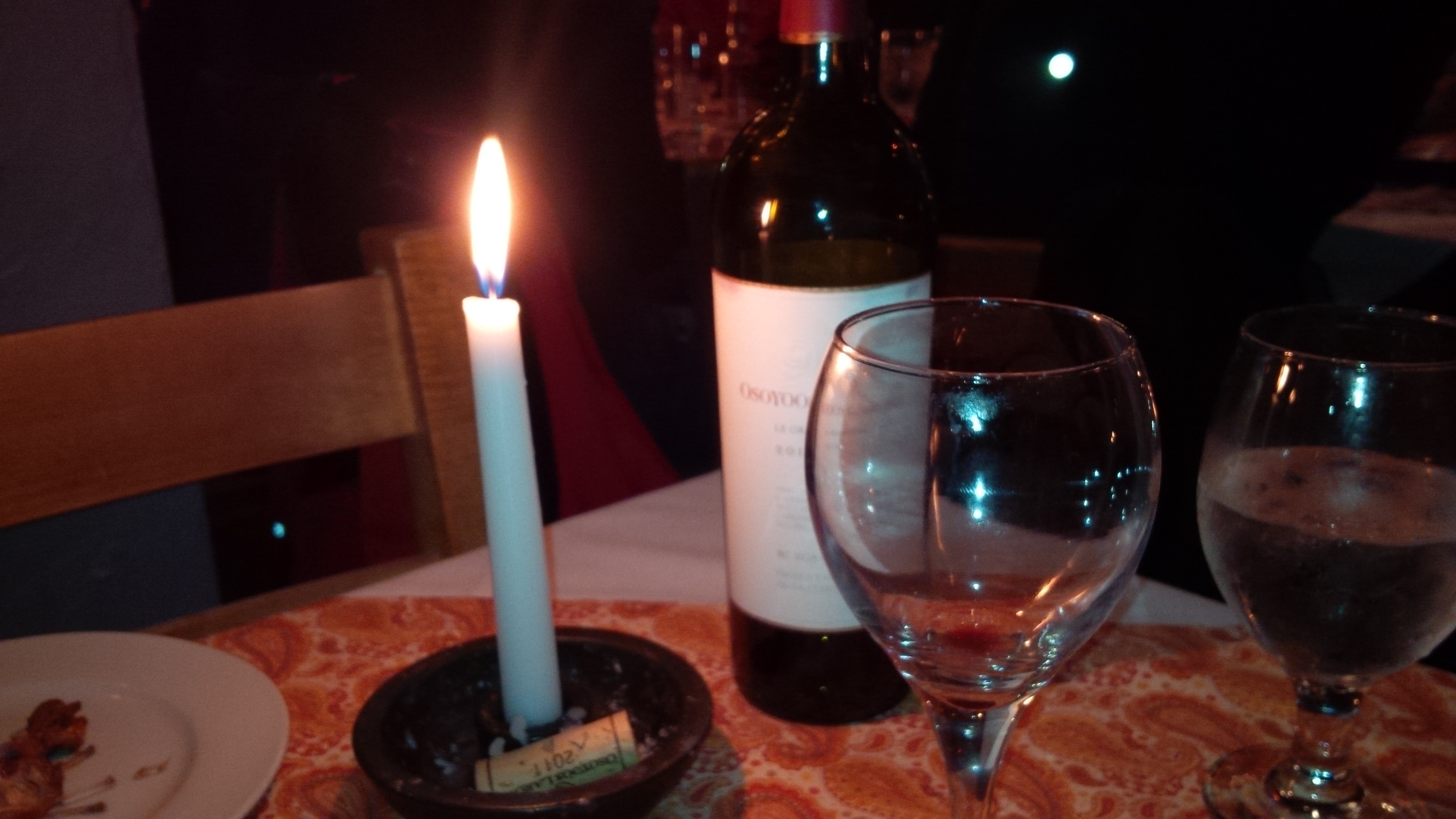 My M and I were driving back from grocery shopping – we have to drive an hour and a half for that – and we had made a bit of an evening of it, too. A meal in a restaurant, like that.