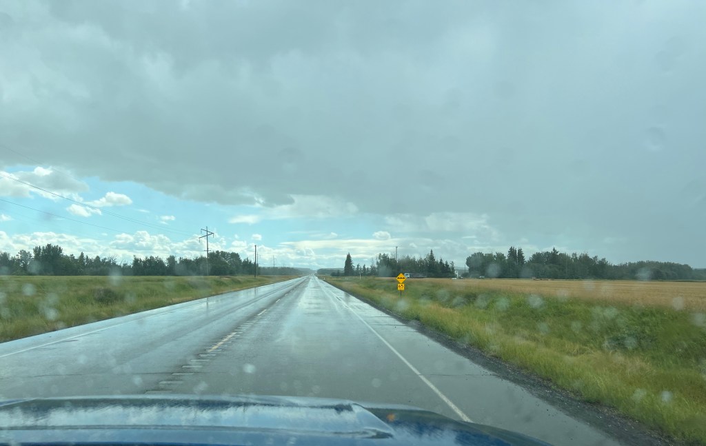 We recently drove across Alberta’s northern prairies during a rain storm.
