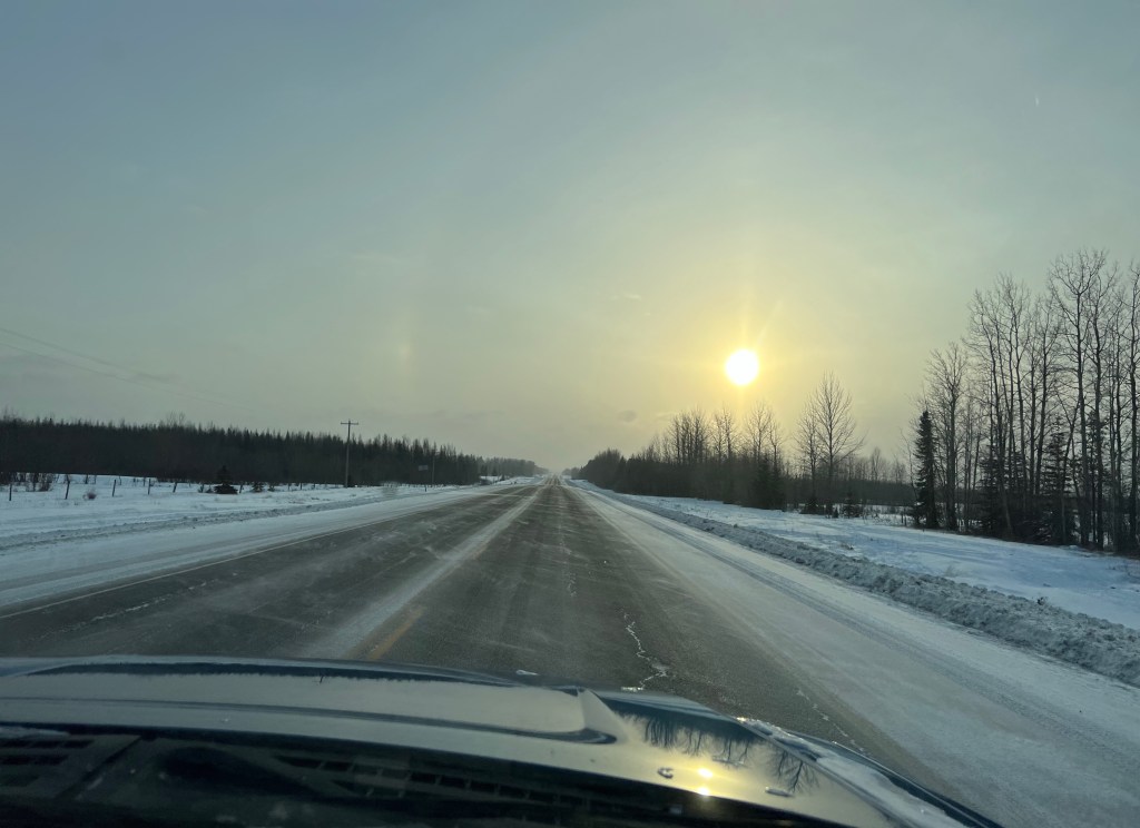 The beginning of yesterday’s drive through northwestern Alberta and into British Columbia was a bit challenging with icy roads and blowing snow, but by 3:00 p.m. the sun had become visible and much of the snowfall had stopped.