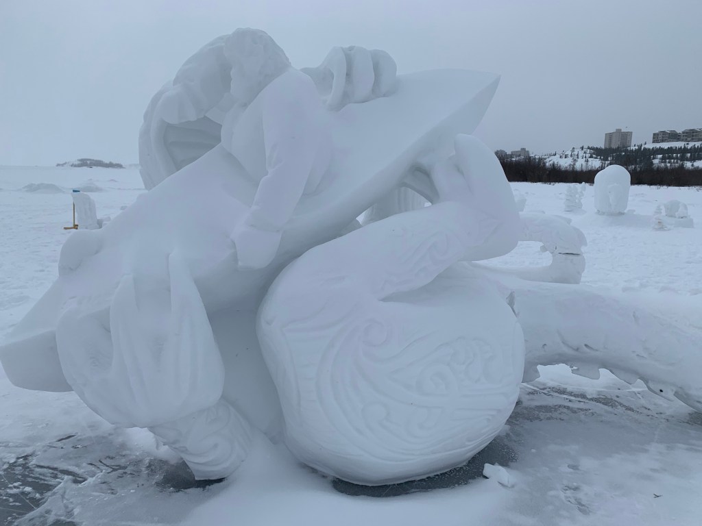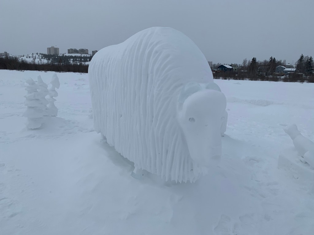 … along with a snow sculpture of a muskox. Also notoriously bad-tempered, you do not want to upset them.