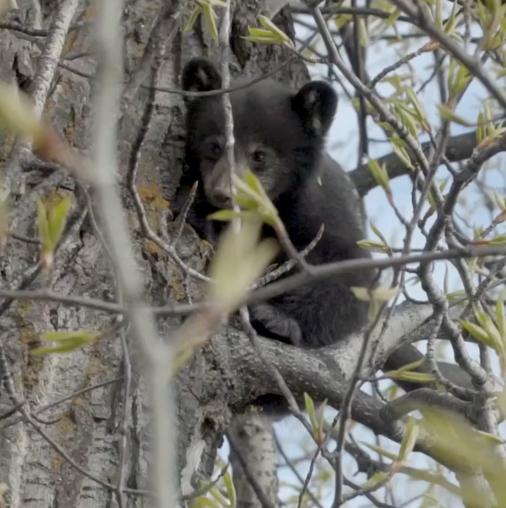 This underweight grizzly is pulling crabapples from a tree in a residential yard. Given the difficult summer they’ve had, we will likely begin to see more of them trying to fatten up for hibernation and will need to be cautious.