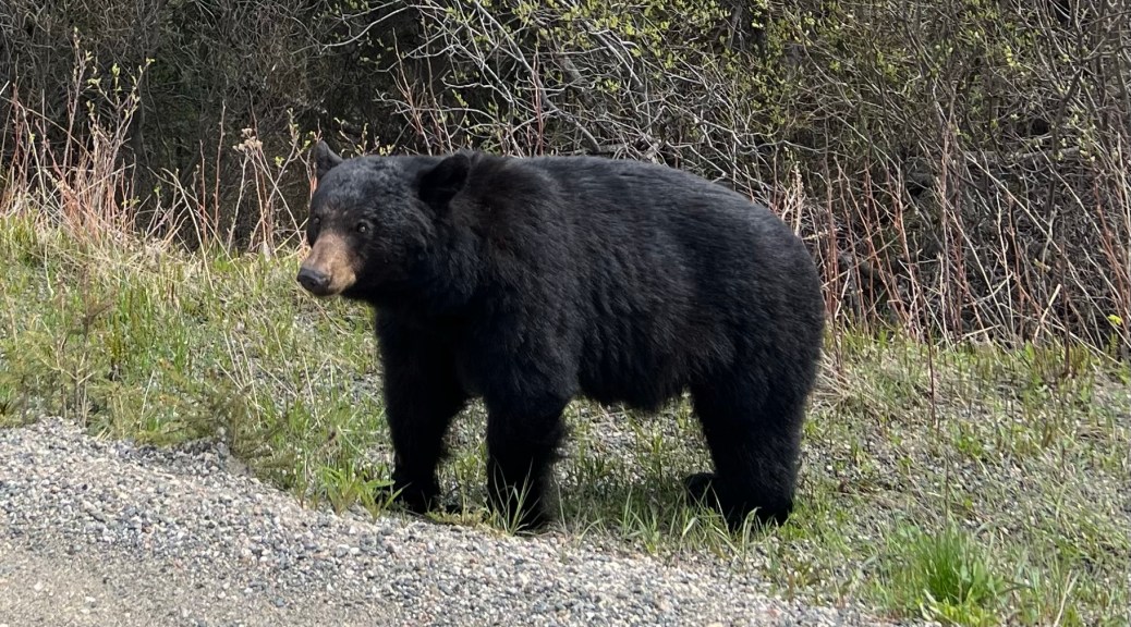 We spotted this tired-looking spring bear, probably a yearling, while returning from a hike in April, 2018. We were safely in our truck when we saw him.This bear was very determinedly getting through the deep snow. Did he have a very important date to keep? This may look like a winter picture, but I actually took this one in late May, 2022, while on my way to a conference. In NWT, it can snow at any time between mid-August and mid-June.This bear was a very big guy and still looking sleepy in early May, 2021.This young bear from June, 2021, was very curious about us and looked at us just as much as we looked at him; it’s one of my all-time favourite photos. He was probably wondering if we had something more interesting to eat than plain salad!