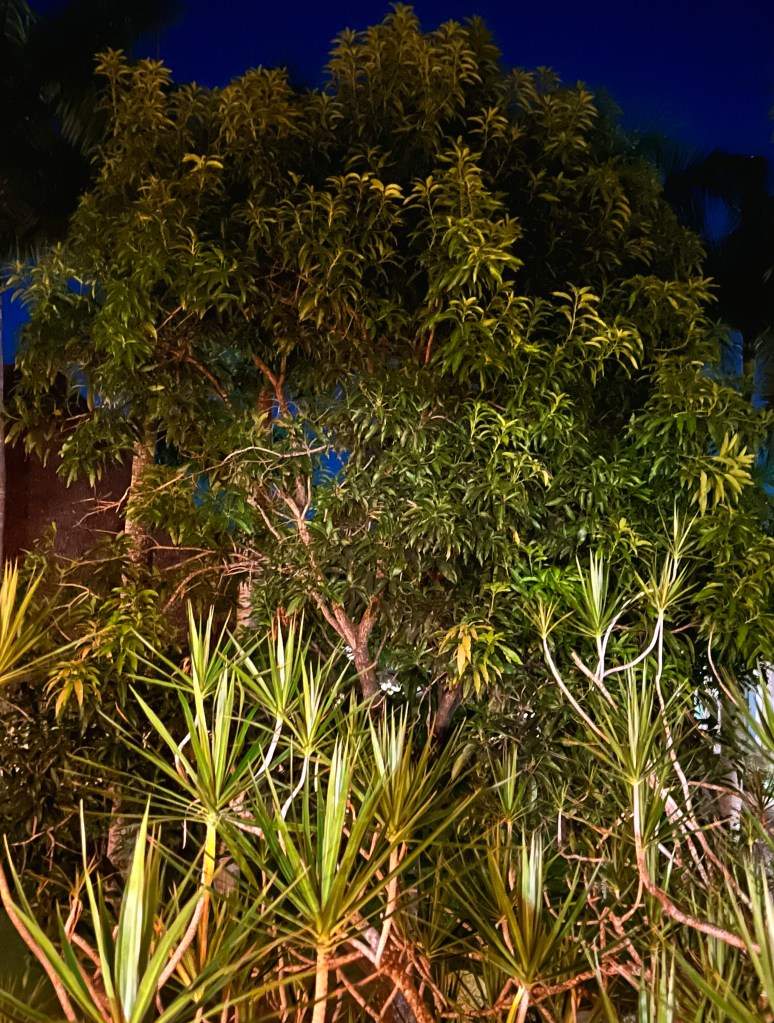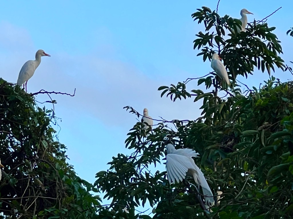 Underlit trees. Herons of a feather flock together! I don’t know what type of butterfly this is, but it’s beautiful. Blue and green. Parakeet treat. (Photo courtesy of A. Winthrop) Sunset. Moon shot.