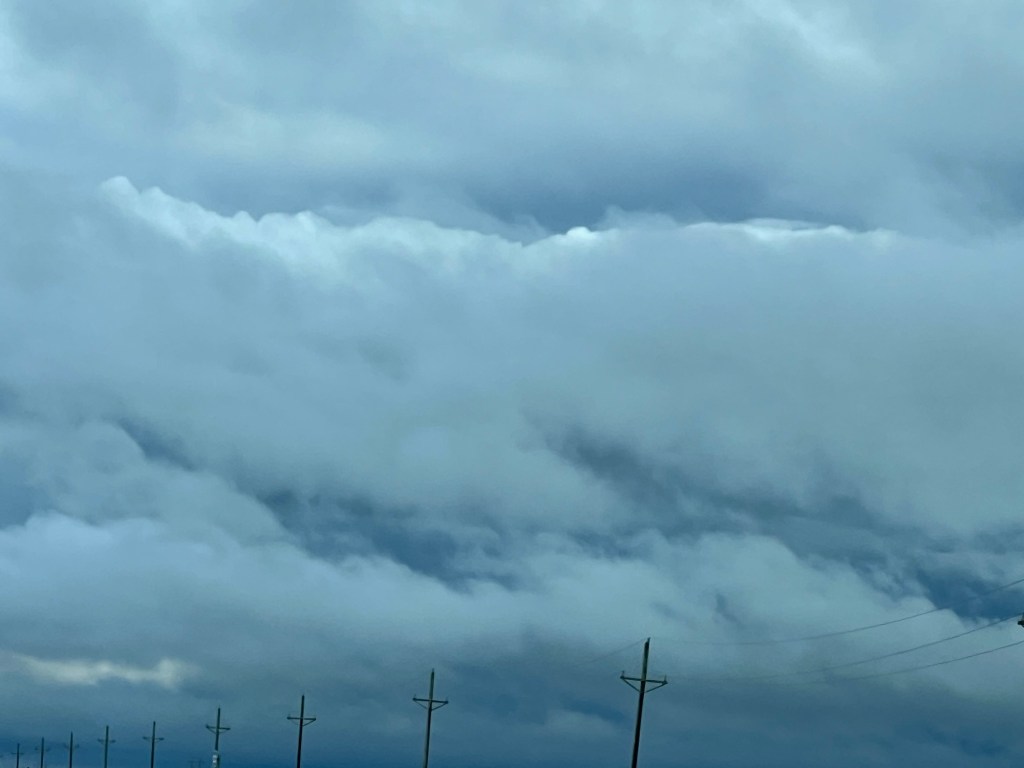 The triangular cloud on the left is what is known as a “cloud with vertical development.” These are the ones that can cause storms, especially thunderstorms.