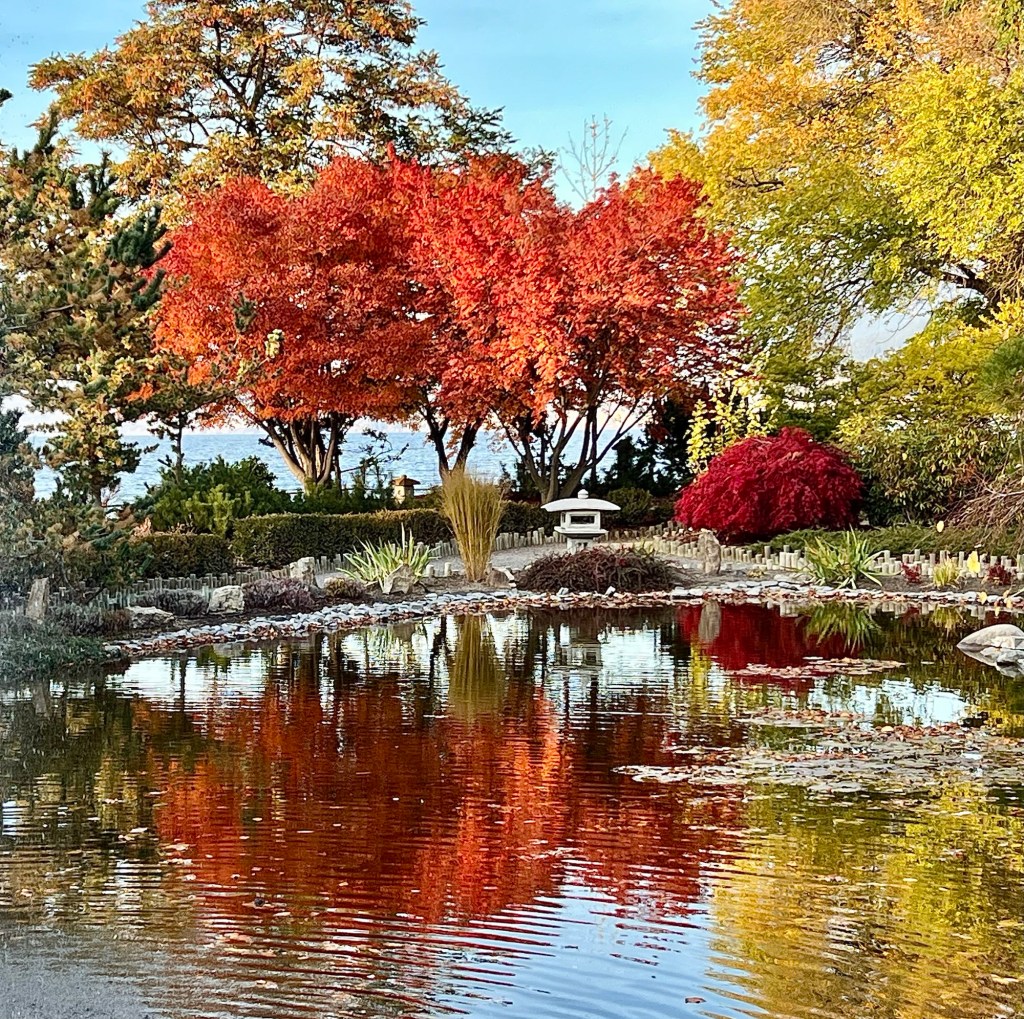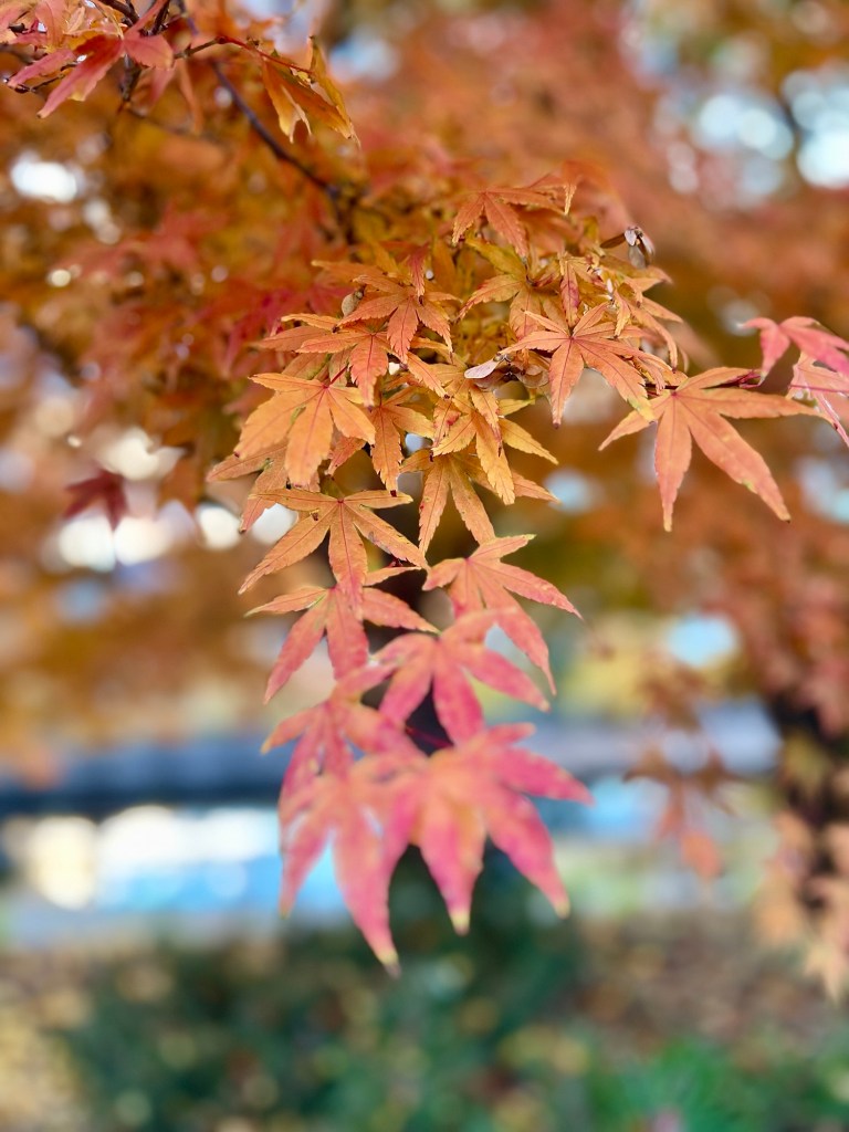And here are three Japanese maples showing a gorgeous – and reflective – reddish-orange.