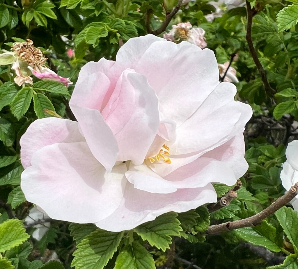 One of things I love about summer is seeing all the various types of roses, blooming away in splendid profusion. There are so many, many of them, from the elegant to the plain, and all of them very lovely in their own way.