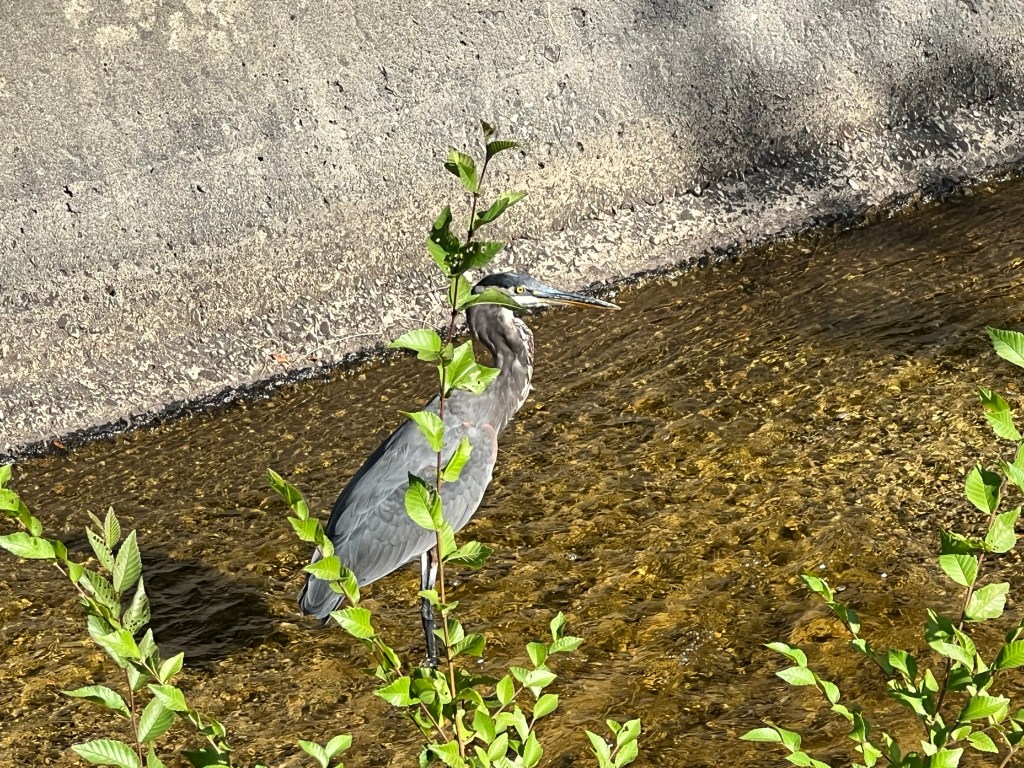 M and I saw this great blue heron in the creek while we were out for a walk.