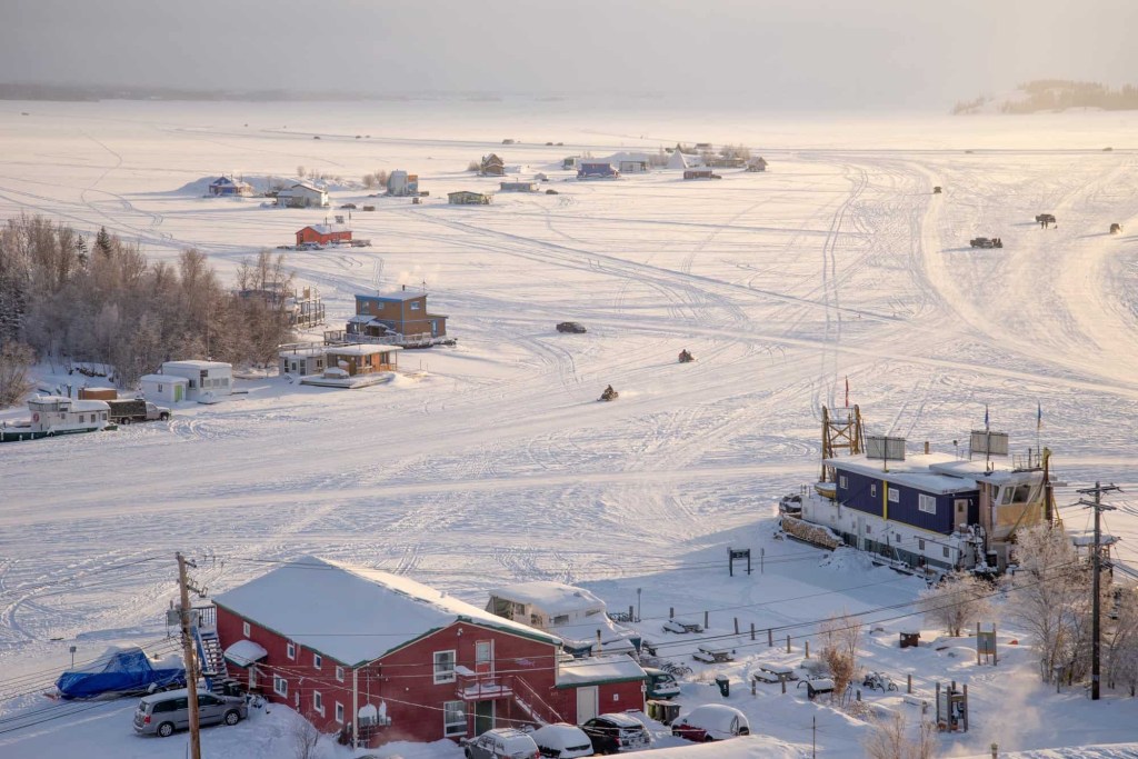 So, what is this? It’s a frozen lake runway. There is another nearby airport (quite a large one, actually) that’s on dry land, but here, summer float planes can become winter ski or wheel planes just off Latham Island on Great Slave Lake.