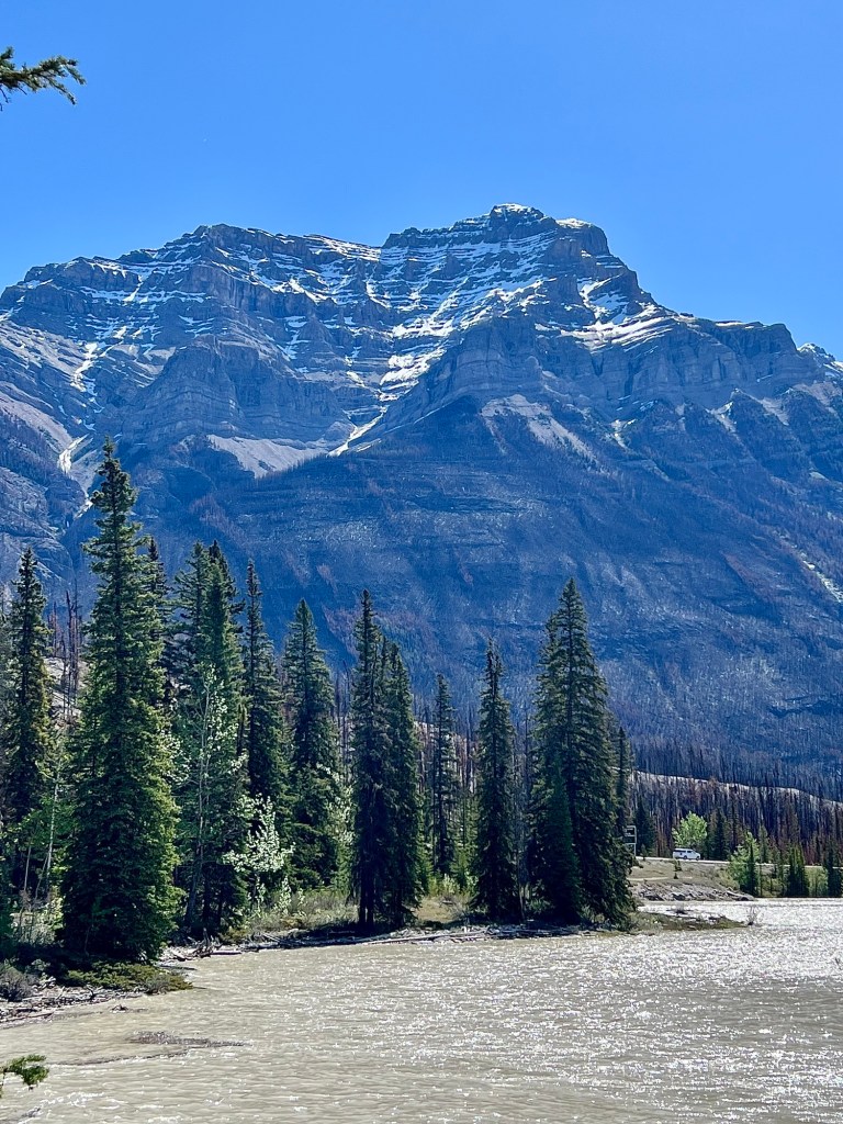 This beautiful route parallels the Athabasca River along the way.