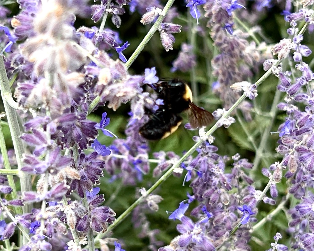 The bees adore these plants and settle on them in their thousands, it seems. Like humans, they can’t stay away from that beautiful summery perfume and, of course, the lavender nectar.