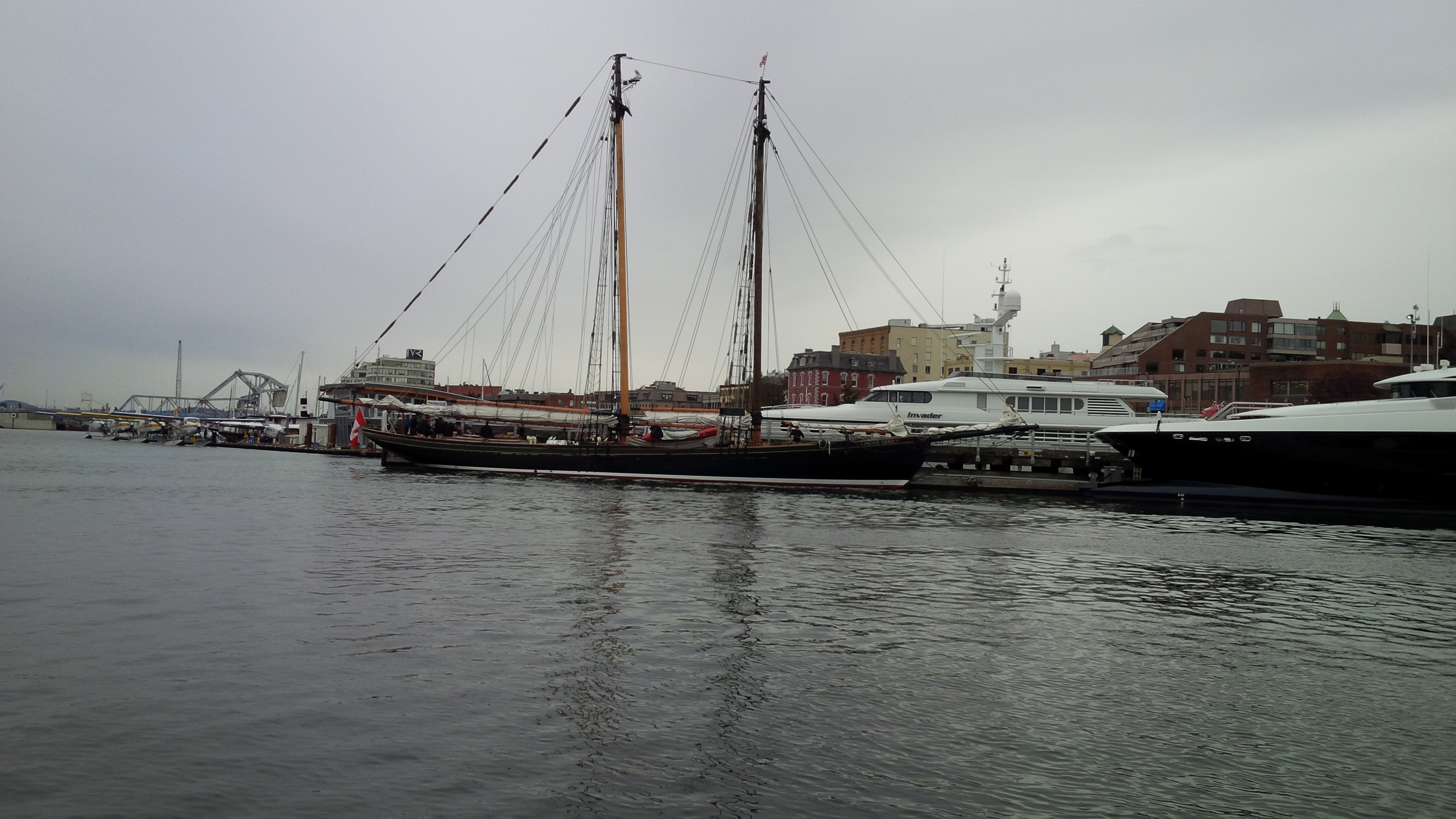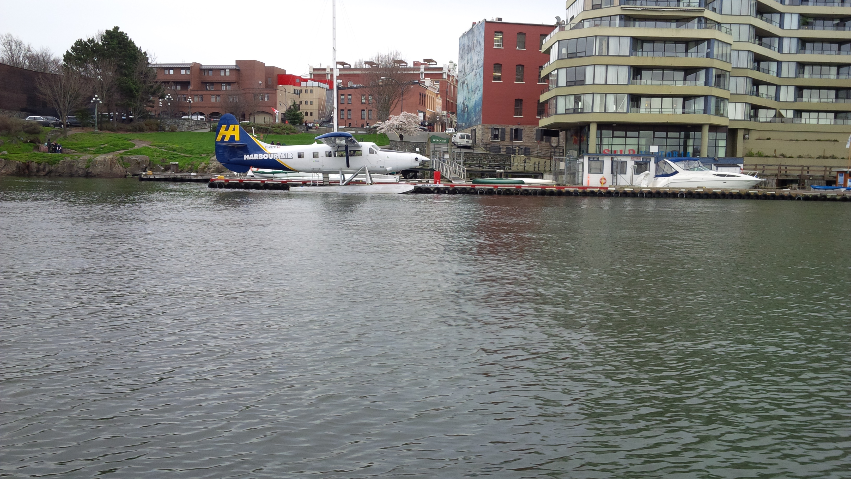 There’s regular float plane service between Victoria and Vancouver.Seals in the harbour. They look cute but can be quite aggressive.An interesting tree on the pathway around Victoria Harbour. It looks like a giant with outstretched arms.J loved seafood.The quirky houseboat village. Sometimes, tourists will walk right inside people’s homes!A two-masted schooner used for student training.Far up the fjord that’s part of Victoria harbour.A tugboat.J was a fan of spring bulbs.Seagulls have no respect for historical figures.