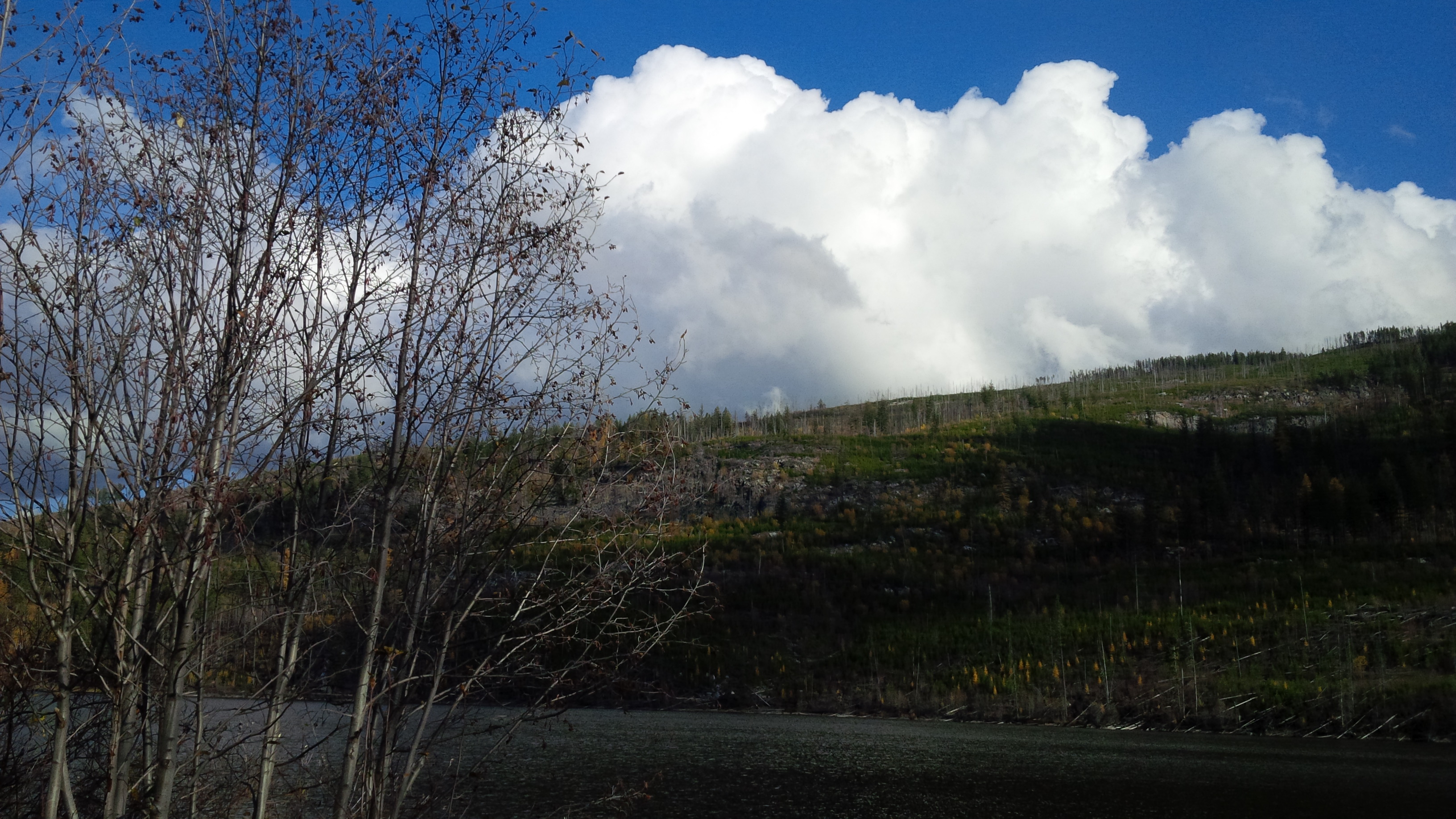 Yesterday, M and I went for a hike in Okanagan Mountain Provincial Park. It had rained earlier in the day, but when we got started at about one pm, it was bright and sunny with that sharp clarity of fall light.