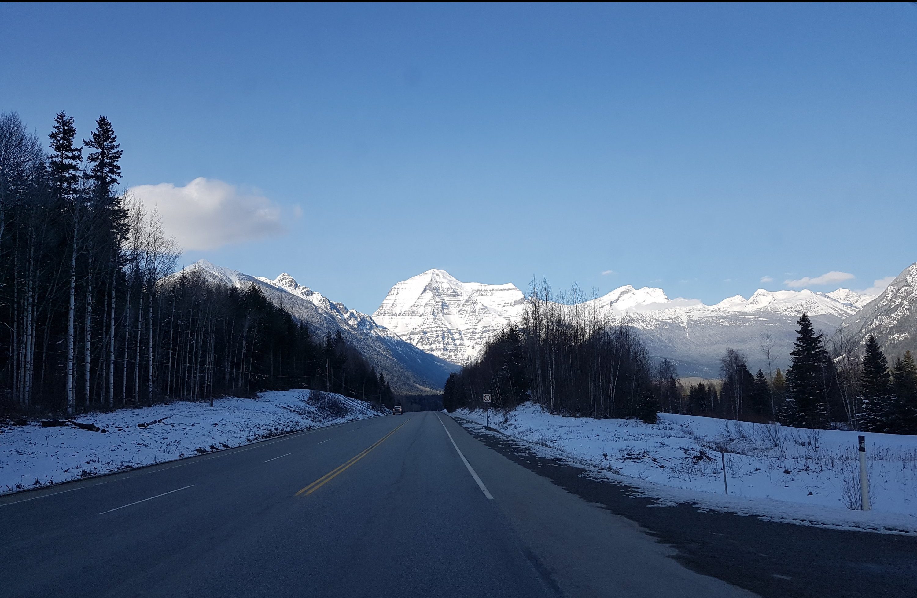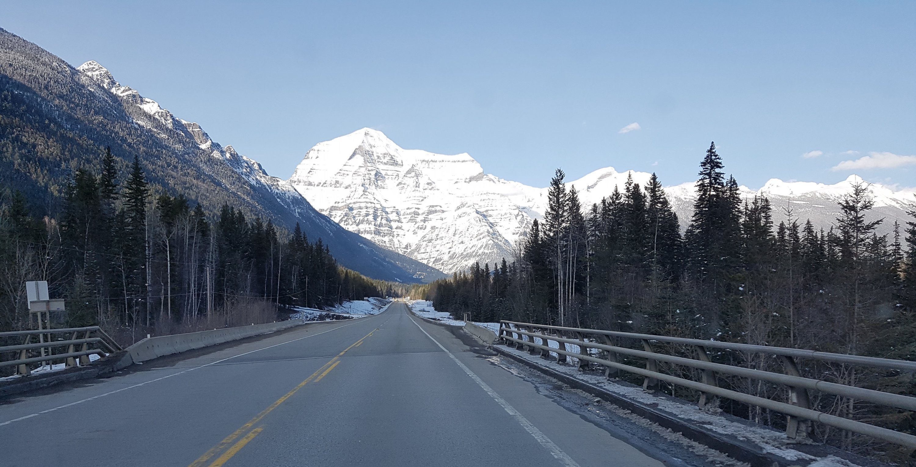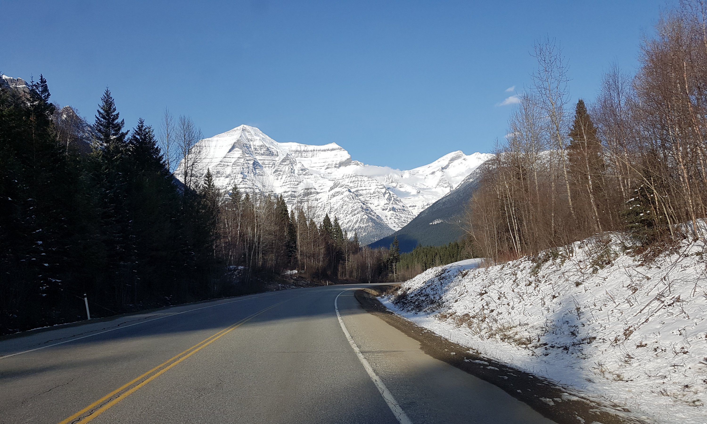 We were in high mountain country, but Mount Robson was still quite a frozen surprise sitting in the early spring sun.
