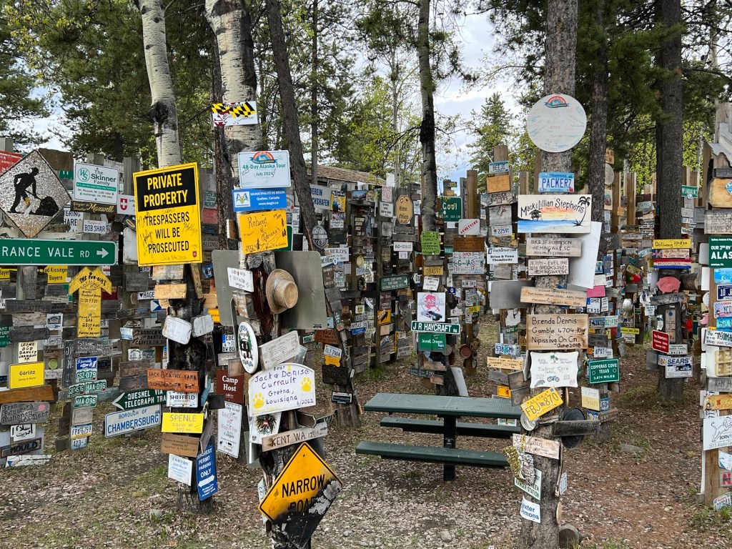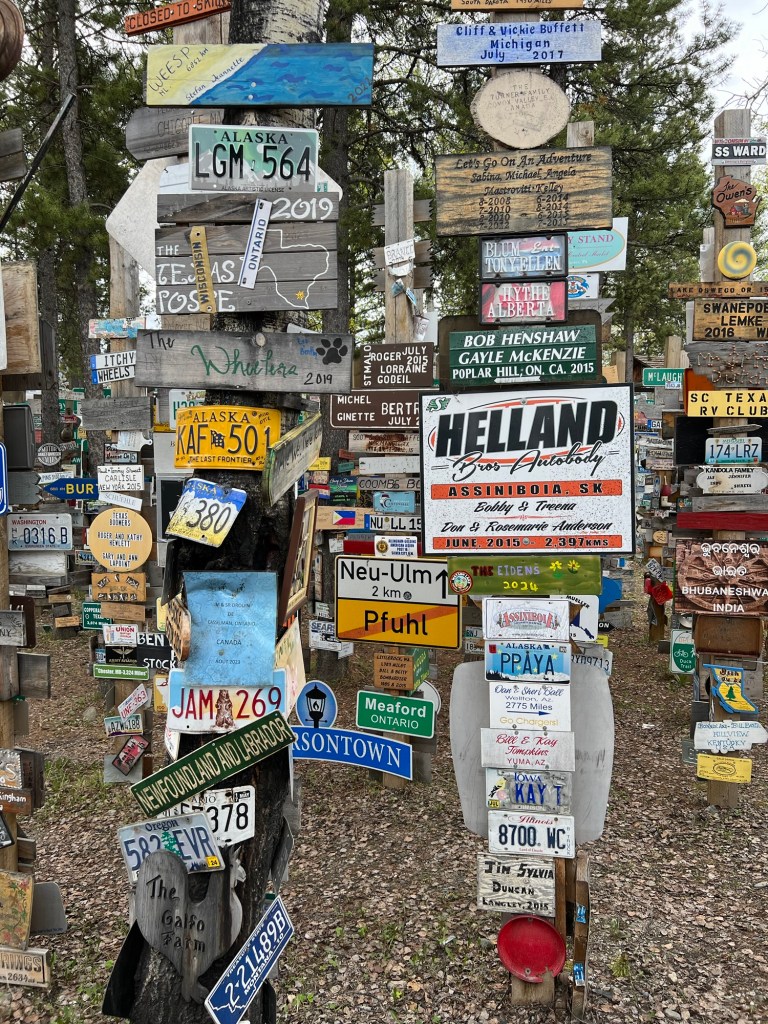 The signpost forest is one of the best-known attractions along the 2414 km highway from Dawson Creek, B.C. to Fairbanks, AK.