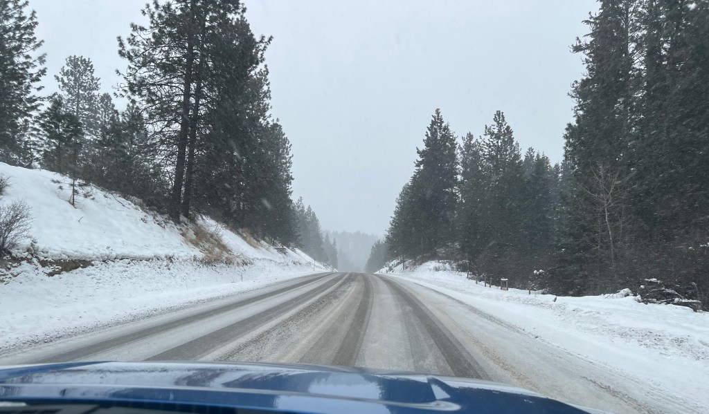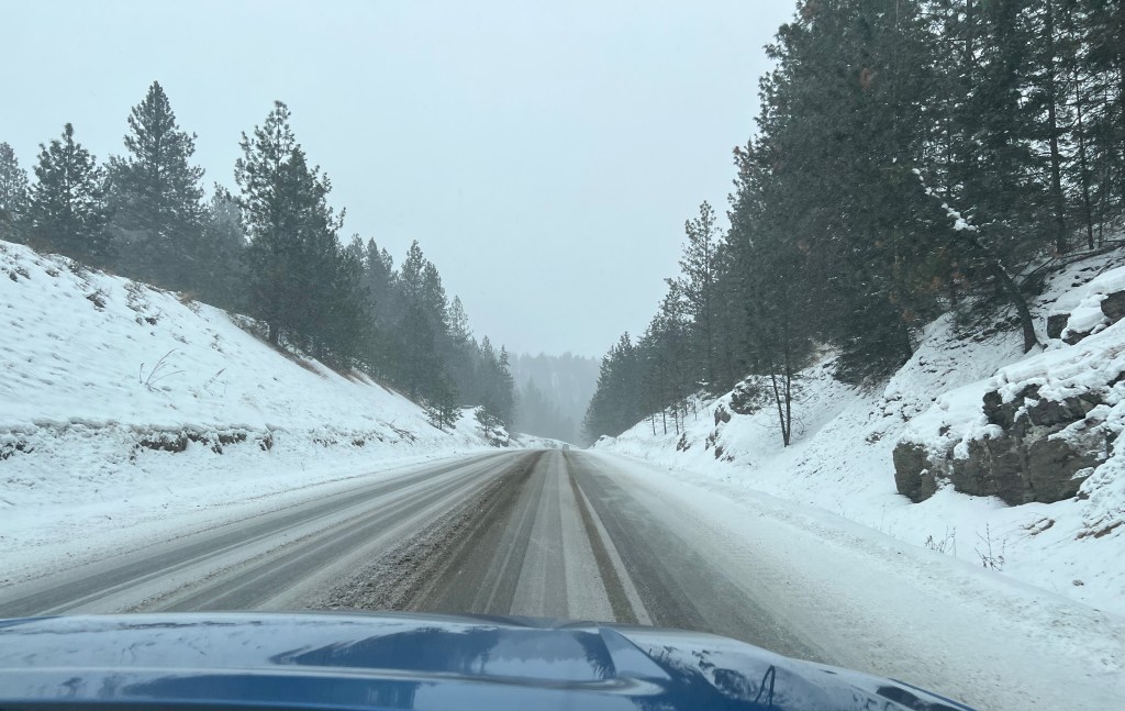 Two hours outside of Penticton, we were still dealing with snow and blowing snow, but at least it was a good 10°C warmer than our departure point was at -22C (-8F) and most of the snow was falling at the higher elevations.