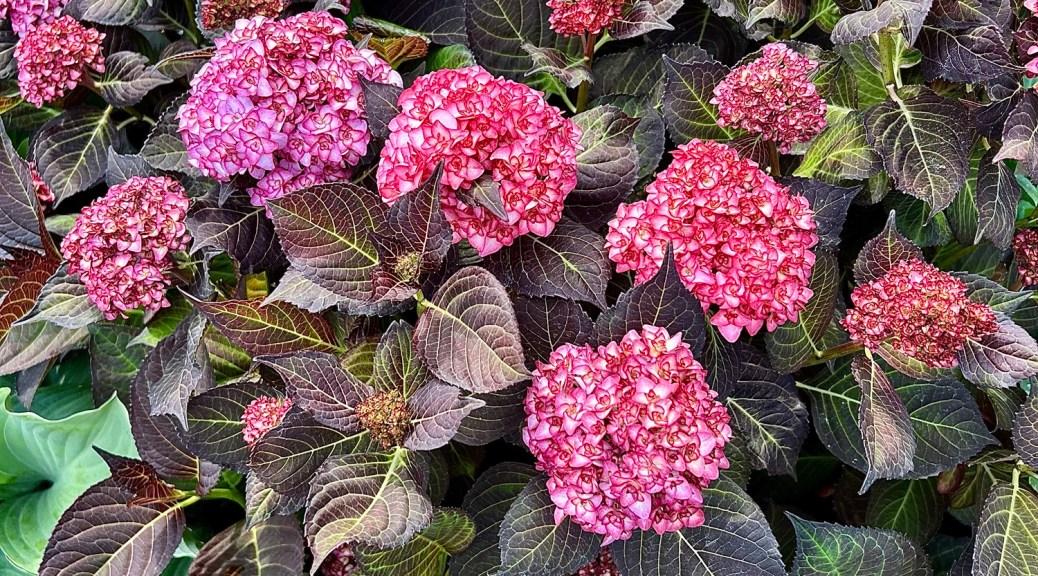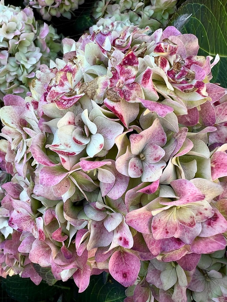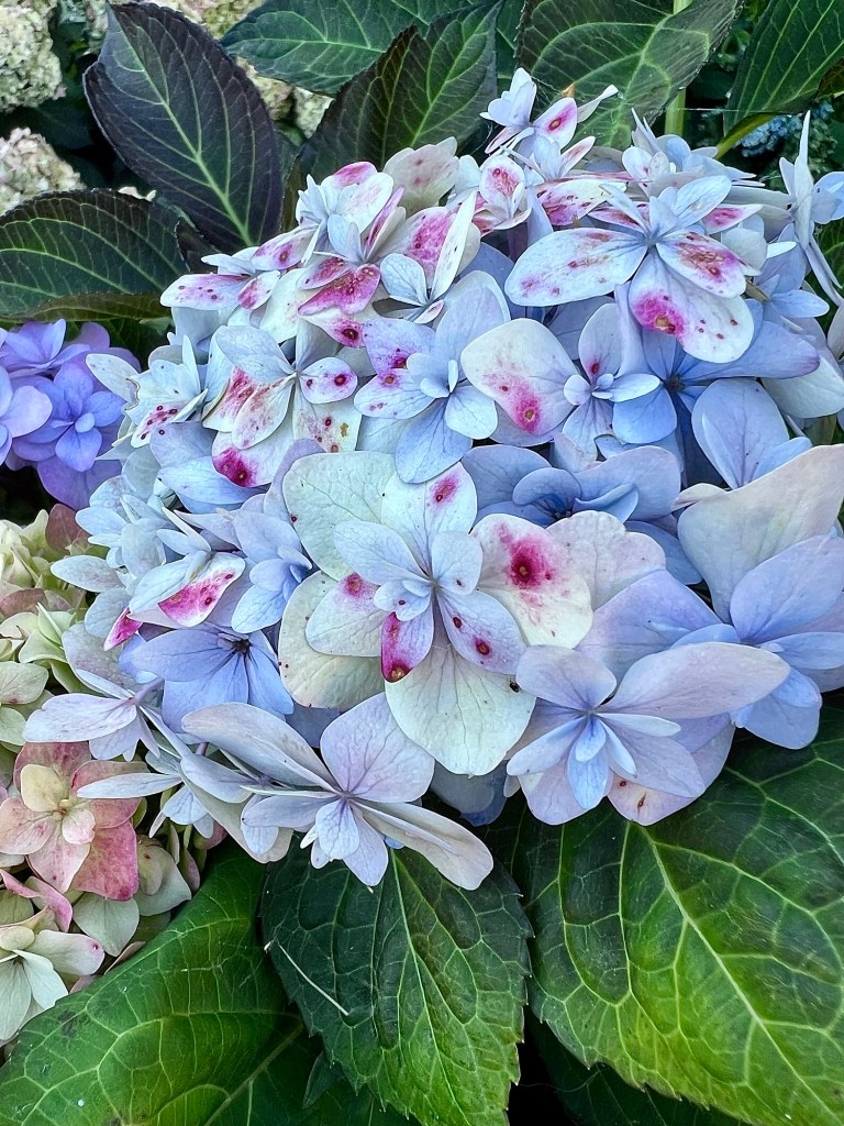 I posted about colour-shifting hydrangeas last week but since they’re so beautiful and in the middle of their annual costume change, I’m visiting the same topic yet again but this time regarding a different type of hydrangea.