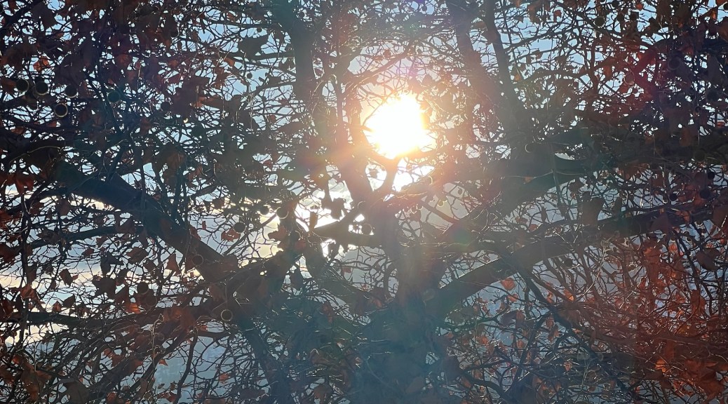 A birch tree that’s very reluctant to give up its leaves is a pleasant yellowy December sight.