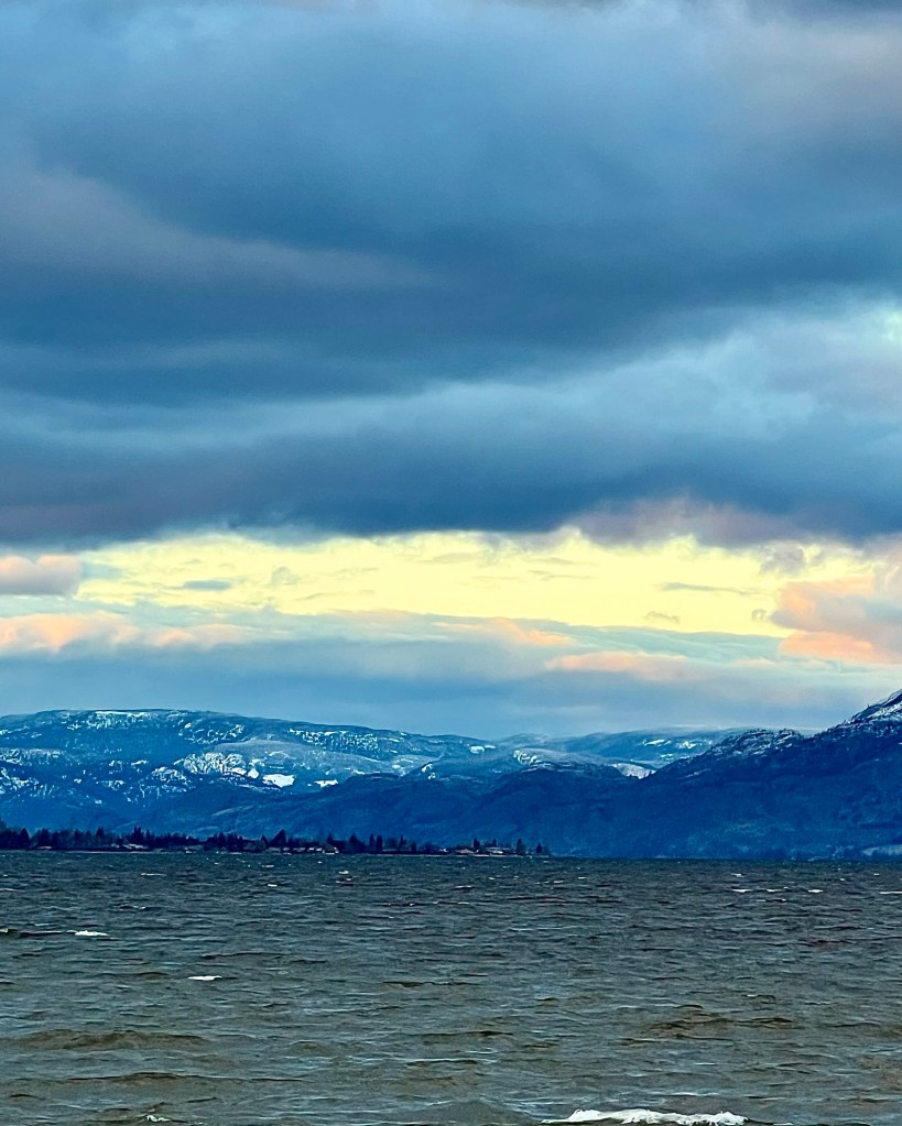 The heavy valley cloud was being forced out by a very brisk, cold wind blowing out of the north that was also causing whitecaps on the lake. Brrr.