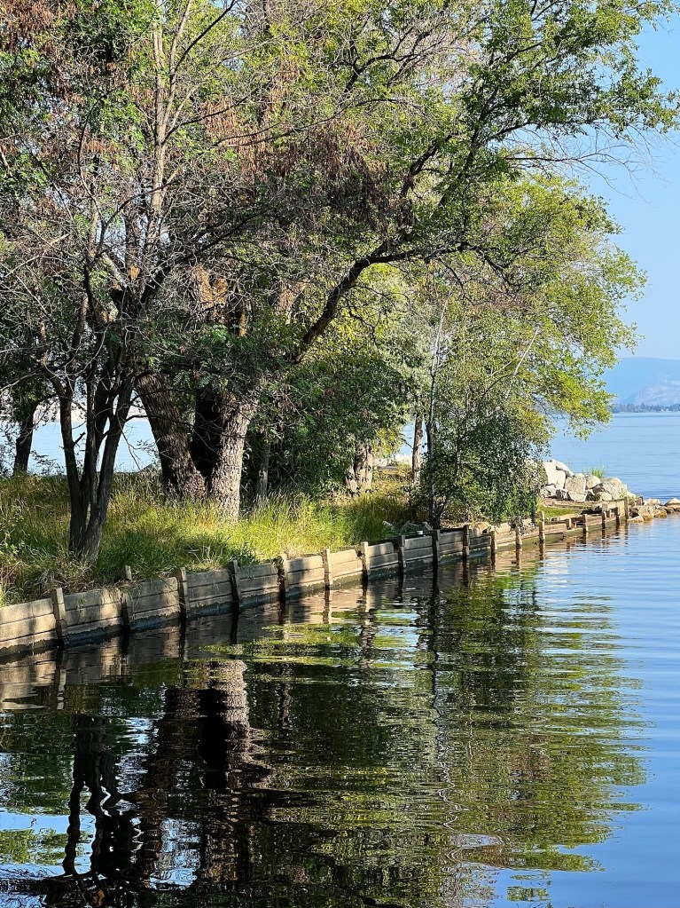 We had a heavy rainfall overnight – something that’s welcomed since we still have drought conditions – and the next morning the weather had left a beautiful flat calm as well as clearing views of Skaha Lake.