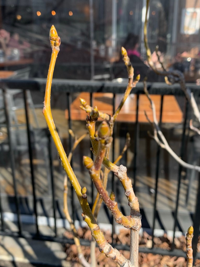 Yesterday I enjoyed some glorious spring weather with +14C (57F) and warm sun. We sat outside for lunch and spotted these buds. Yay!
