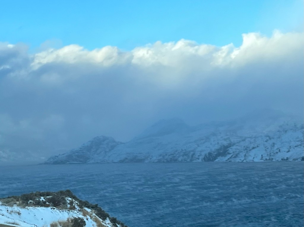 When M and I travel this highway in December and January, we are careful to do our homework first and to only drive it in the daylight hours. Nevertheless, it’s an amazing highway and well worth the drive if you find yourself in the area; the views are spectacular, especially as you start nearing Okanagan Lake.