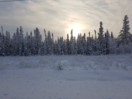 Here on the edge of Great Slave Lake, where I am north of 60 degrees N latitude, I feel like I am living inside a winter post card.